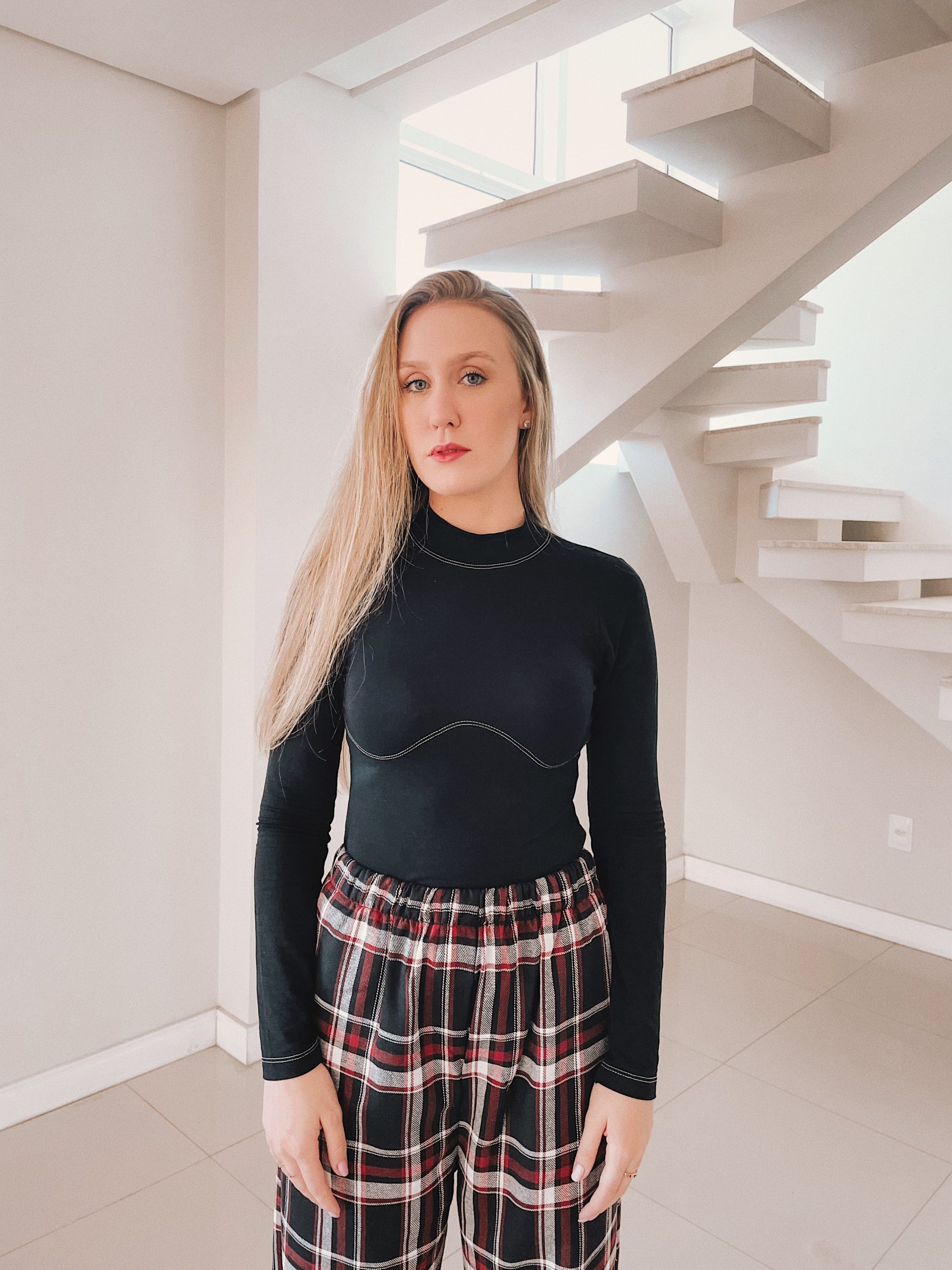 Body em viscolycra com baixa gramatura e elastano que proporciona maior conforto e melhor ajuste ao corpo, golinha levemente mais alta, fechamento por botão de pressão possuindo forro e costuras em contraste que faz toda a diferença na peça (se você prefere uma peça não tão justa é melhor optar por um tamanho maior, verificar tabela de medidas abaixo).