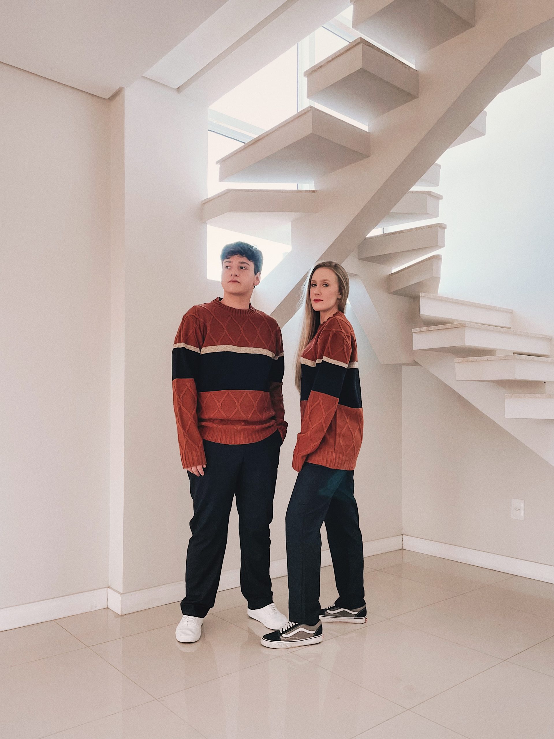 Casaco feito em tricô com trabalhados em ponto aran e três cores divididas em ‘blocos’ (verifique tabela de medidas abaixo).